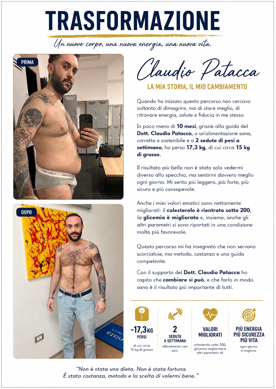 Con il supporto del Dott. Claudio Patacca ho capito che cambiare si può, e che farlo in modo sano è il risultato più importante di tutti.